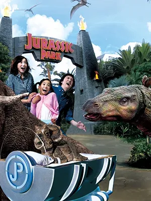 Un emocionante paseo acuático que lleva a los visitantes al mundo de los dinosaurios de la famosa franquicia de películas Jurassic World.